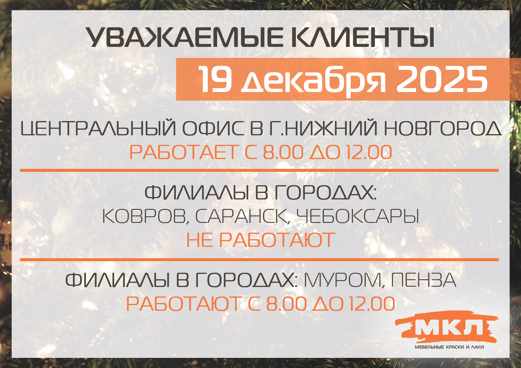 Внимание! Изменение графика работы всех филиалов на 19 декабря 2025